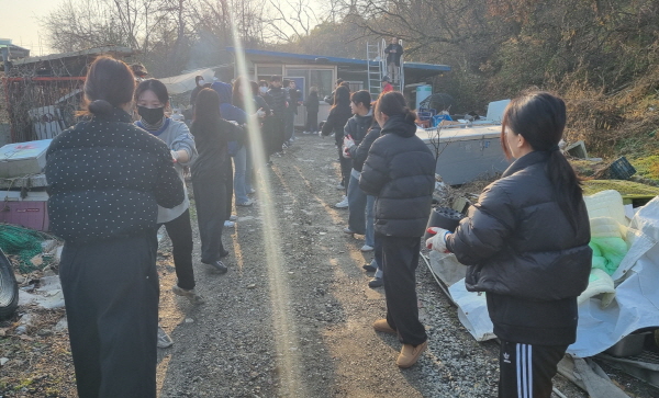 학생들과 교직원은 이날 논산시에 거주하는 3개 가정을 대상으로 약 천여장의 연탄을 직접 날라 전달했다.