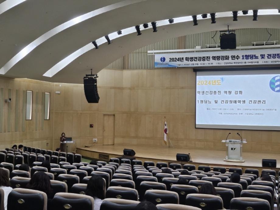 23일 건양대 메디컬 캠퍼스에서 진행된 연수는 <1형 당뇨 및 건강장애 학생의 건강관리>를 주제로 건양대병원 소아청소년과 오준석 교수의 ‘1형 당뇨 학생의 건강관리’, 건양대 간호학과 김지은 교수의 ‘건강장애 학생의 건강관리’ 등의 세부 내용으로 이뤄졌다.